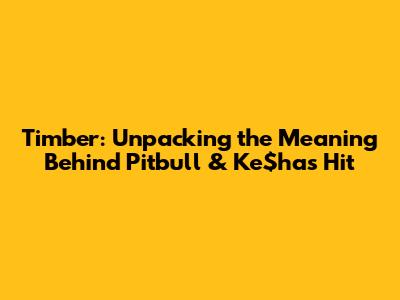 Timber: Unpacking The Meaning Behind Pitbull & Ke$ha's Hit