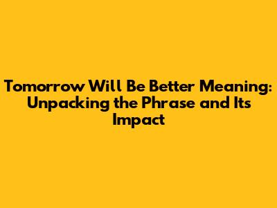 The psychological effects are also worth considering. The phrase can be a powerful tool for shifting our mindset. It encourages us to focus on the future, to look for solutions, and to believe in our ability to cope with challenges. It can boost our self-esteem and make us feel more in control of our lives. When we hear the phrase, we unconsciously begin to look for ways that things might improve. This can be as simple as planning something enjoyable for tomorrow, seeking support from others, or taking steps to address the problem at hand. It also fosters the idea of building a positive mindset. The phrase inspires positive thinking. Repeatedly telling ourselves that tomorrow will be better can change the way we see the world. It is also an important aspect of building a resilient mindset. The more we use this statement, the more resilient we become. The phrase is a reminder that difficulties are temporary, and can also help us build a more optimistic outlook.