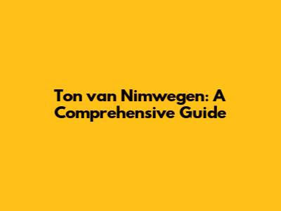 Ton Van Nimwegen: A Comprehensive Guide