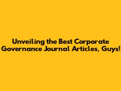 Hey there, future governance gurus and business buffs! Ever found yourself staring at a pile of academic papers, wondering which ones actually matter when it comes to corporate governance? Yeah, me too. It can feel like navigating a labyrinth, right? But don't sweat it, because today, we're diving deep into the crème de la crème of corporate governance journal articles. We're talking about the research that’s shaping how companies are run, the studies that make you think, and the insights that can genuinely elevate your understanding of how businesses should operate. Whether you're a student hitting the books, a professional looking to sharpen your edge, or just plain curious about the engines behind successful (and sometimes not-so-successful) companies, you've come to the right place. We'll break down what makes these articles stand out, where to find them, and why they’re your secret weapon for mastering the complex world of corporate oversight.