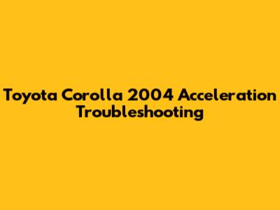 Toyota Corolla 2004: Troubleshooting Acceleration Issues