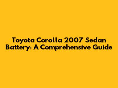 Hey guys! Today, we're diving deep into the world of the Toyota Corolla 2007 sedan battery. If you're a proud owner of this reliable vehicle, understanding the battery is crucial for ensuring smooth starts and consistent performance. We'll cover everything from choosing the right battery to maintenance tips and troubleshooting common issues. So, buckle up and let's get started!