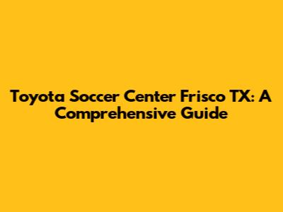 Toyota Soccer Center In Frisco: Your Ultimate Guide