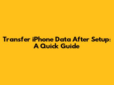 Transfer IPhone Data After Setup: A Quick Guide