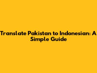 Translate Pakistan To Indonesian: A Simple Guide