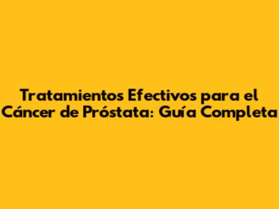 Tratamientos Efectivos Para El Cáncer De Próstata: Guía Completa