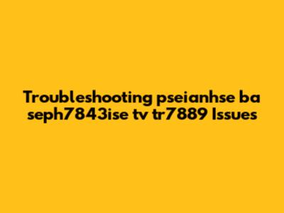 Troubleshooting Pseianhse Ba Seph7843ise Tv Tr7889 Issues