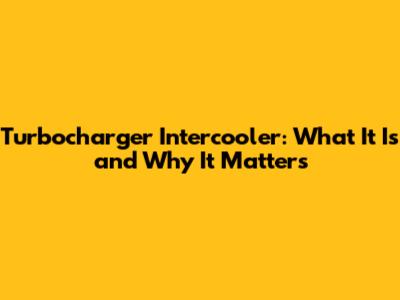 Turbocharger Intercooler: What It Is And Why It Matters