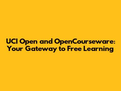 UCI Open & OpenCourseware: Your Guide To Free Education