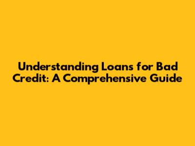 Understanding Loans For Bad Credit: A Comprehensive Guide