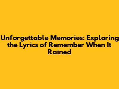 Unforgettable Memories: Exploring The Lyrics Of 'Remember When It Rained'