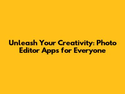 Unleash Your Creativity: Photo Editor Apps For Everyone