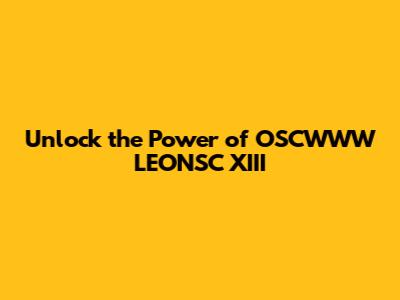 Unlock The Power Of OSCWWW LEONSC XIII