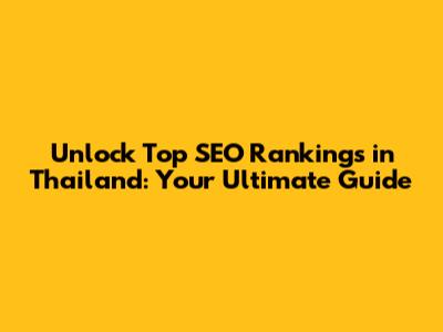Unlock Top SEO Rankings In Thailand: Your Ultimate Guide