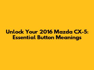 Unlock Your 2016 Mazda CX-5: Essential Button Meanings