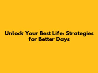Unlock Your Best Life: Strategies For Better Days