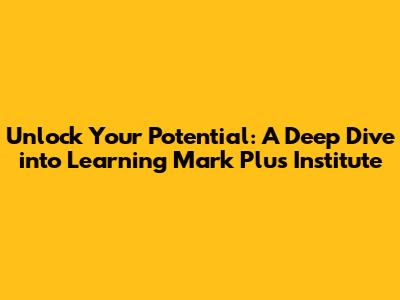 Unlock Your Potential: A Deep Dive Into Learning Mark Plus Institute