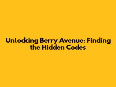 Unlocking Berry Avenue: Finding The Hidden Codes