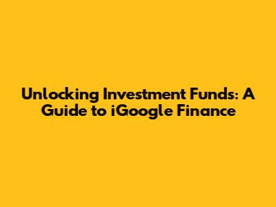 Unlocking Investment Funds: A Guide To IGoogle Finance