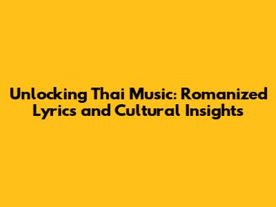 Unlocking Thai Music: Romanized Lyrics And Cultural Insights