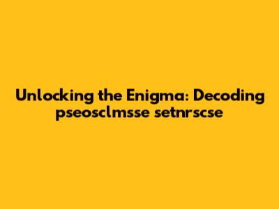 Unlocking The Enigma: Decoding 'pseosclmsse Setnrscse'