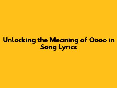 Unlocking The Meaning Of Oooo In Song Lyrics