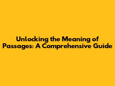 Unlocking The Meaning Of Passages: A Comprehensive Guide