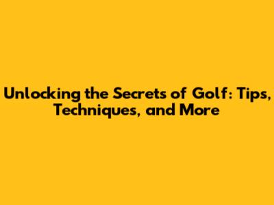 Unlocking The Secrets Of Golf: Tips, Techniques, And More