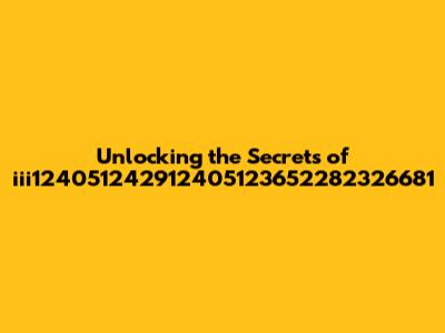Unlocking The Secrets Of Iii124051242912405123652282326681