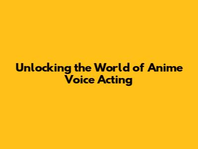 Unlocking The World Of Anime Voice Acting