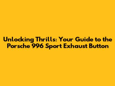Unlocking Thrills: Your Guide To The Porsche 996 Sport Exhaust Button