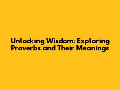 Unlocking Wisdom: Exploring Proverbs And Their Meanings