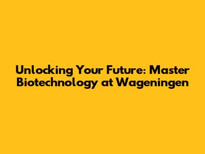 Unlocking Your Future: Master Biotechnology At Wageningen