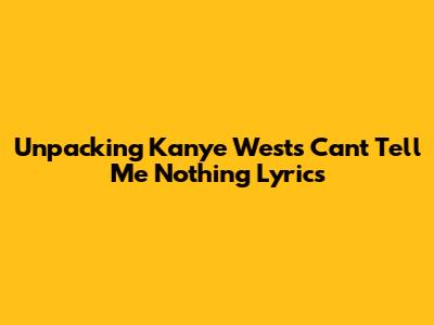 Unpacking Kanye West's 'Can't Tell Me Nothing' Lyrics