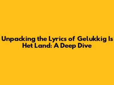 Unpacking The Lyrics Of 'Gelukkig Is Het Land': A Deep Dive