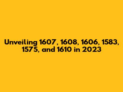 Unveiling 1607, 1608, 1606, 1583, 1575, And 1610 In 2023