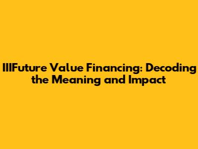Hey there, finance enthusiasts! Ever heard of IIIFuture Value Financing? If you're scratching your head, no worries – we're diving deep to unravel its meaning, explore its benefits, and give you a comprehensive understanding of this financial tool. In the realm of finance, terms can sometimes sound like a different language. But fear not, as we break down IIIFuture Value Financing into easily digestible chunks. This article aims to provide a clear, concise, and engaging explanation of what it is, how it works, and why it matters. Get ready to enhance your financial literacy and discover how this financing option can be a game-changer. So, let’s get started.