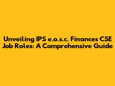 Unveiling IPS E.o.s.c. Finances CSE Job Roles: A Comprehensive Guide