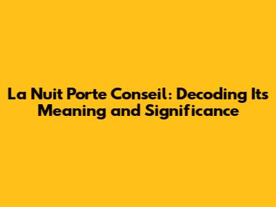 Unveiling 'La Nuit Porte Conseil': Meaning And Usage