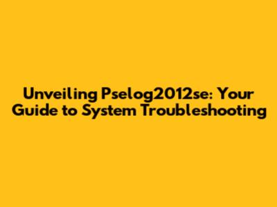 Unveiling Pselog2012se: Your Guide To System Troubleshooting