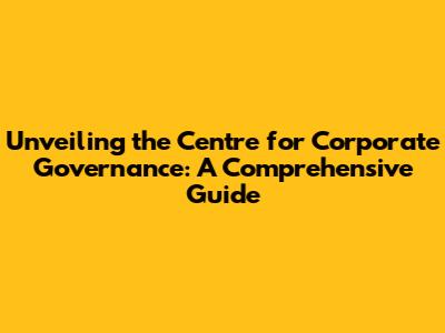 Unveiling The Centre For Corporate Governance: A Comprehensive Guide