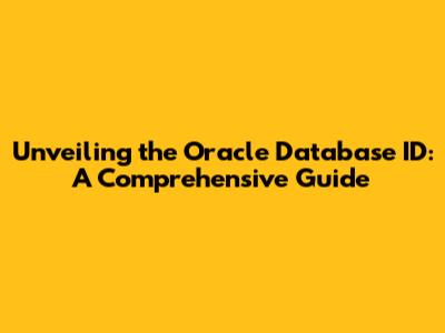 Unveiling The Oracle Database ID: A Comprehensive Guide