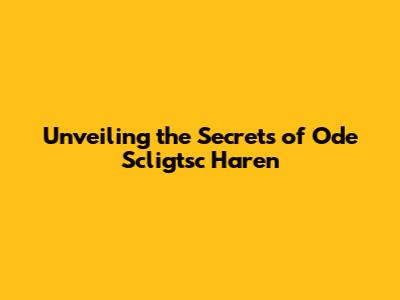 Unveiling The Secrets Of Ode Scligtsc Haren