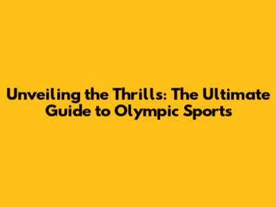 Unveiling The Thrills: The Ultimate Guide To Olympic Sports