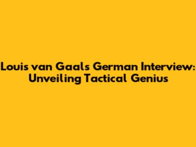 Van Gaal's Insights: A Deep Dive Into His German Interview