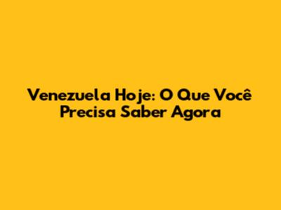 Venezuela Hoje: O Que Você Precisa Saber Agora