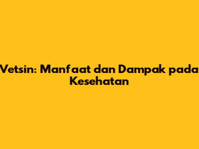 Vetsin: Manfaat Dan Dampak Pada Kesehatan