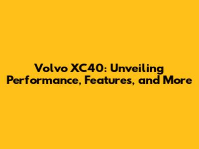 Volvo XC40: Performance, Features, And More