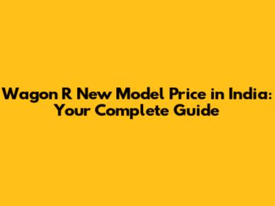 Wagon R New Model Price In India: Your Complete Guide