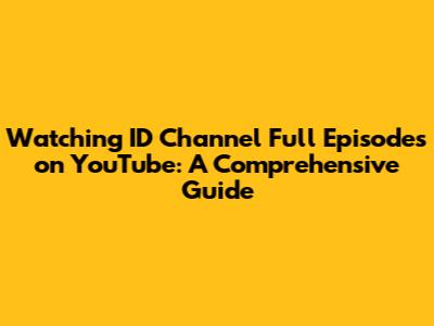 While finding full episodes of ID Channel shows on YouTube can be challenging, it's not impossible. However, it's always best to stick to official sources like Discovery+, cable providers, and online stores to ensure you're watching high-quality content safely and legally. Happy watching, and stay safe out there!